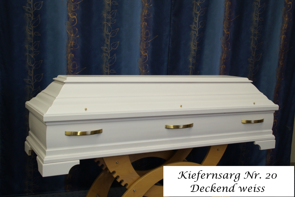 Bei uns können sich die Angehörigen über unser Angebot an Särgen, Urnen und Sterbewäsche informieren. Vom schlichten Kiefernholzsarg bis hin zum aufwändigen Modell in Eiche, Nussbaum oder Mahagoni sind alle Särge aus Vollholz und weisen eine umweltfreundliche Oberfläche sowie Innenausstattung auf.